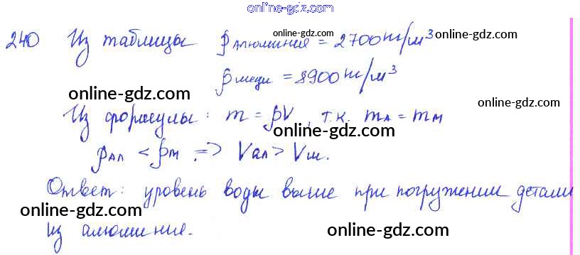 Готовые домашние задания по Физике за 7, 8, 9 класс Сборник задач Лукашик, Иванова 2011 - Задания 240