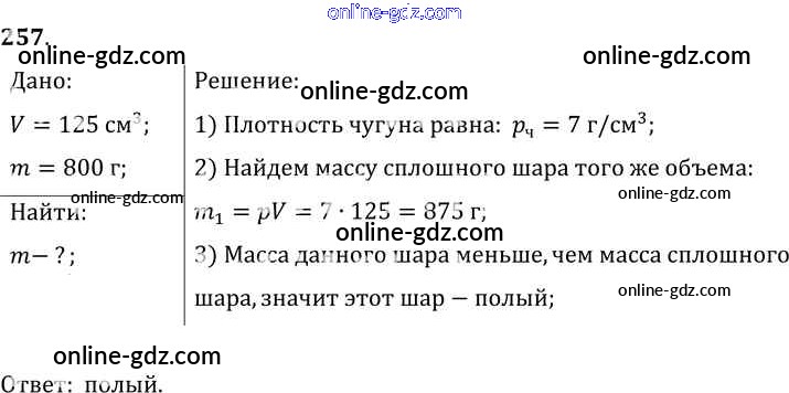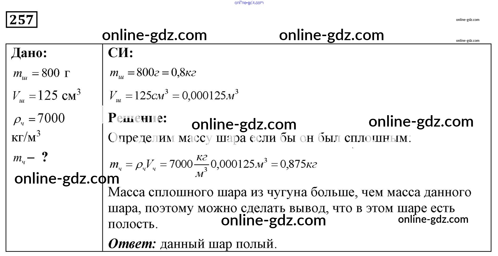 Готовые домашние задания по Физике за 7, 8, 9 класс Сборник задач Лукашик, Иванова 2011 - Задания 257