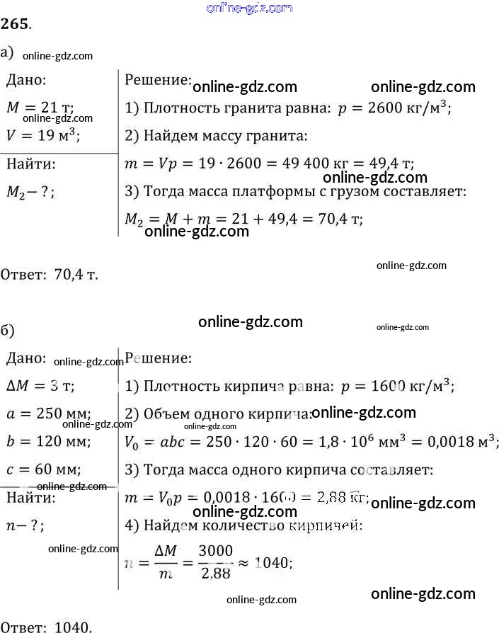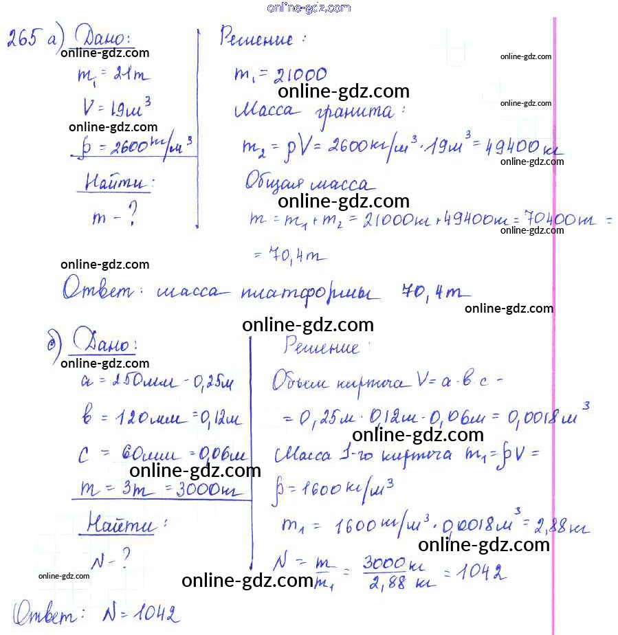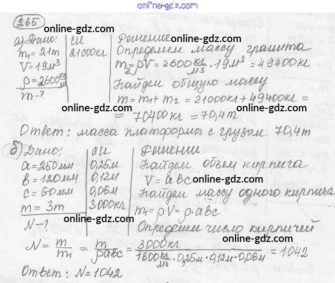 Готовые домашние задания по Физике за 7, 8, 9 класс Сборник задач Лукашик, Иванова 2011 - Задания 265