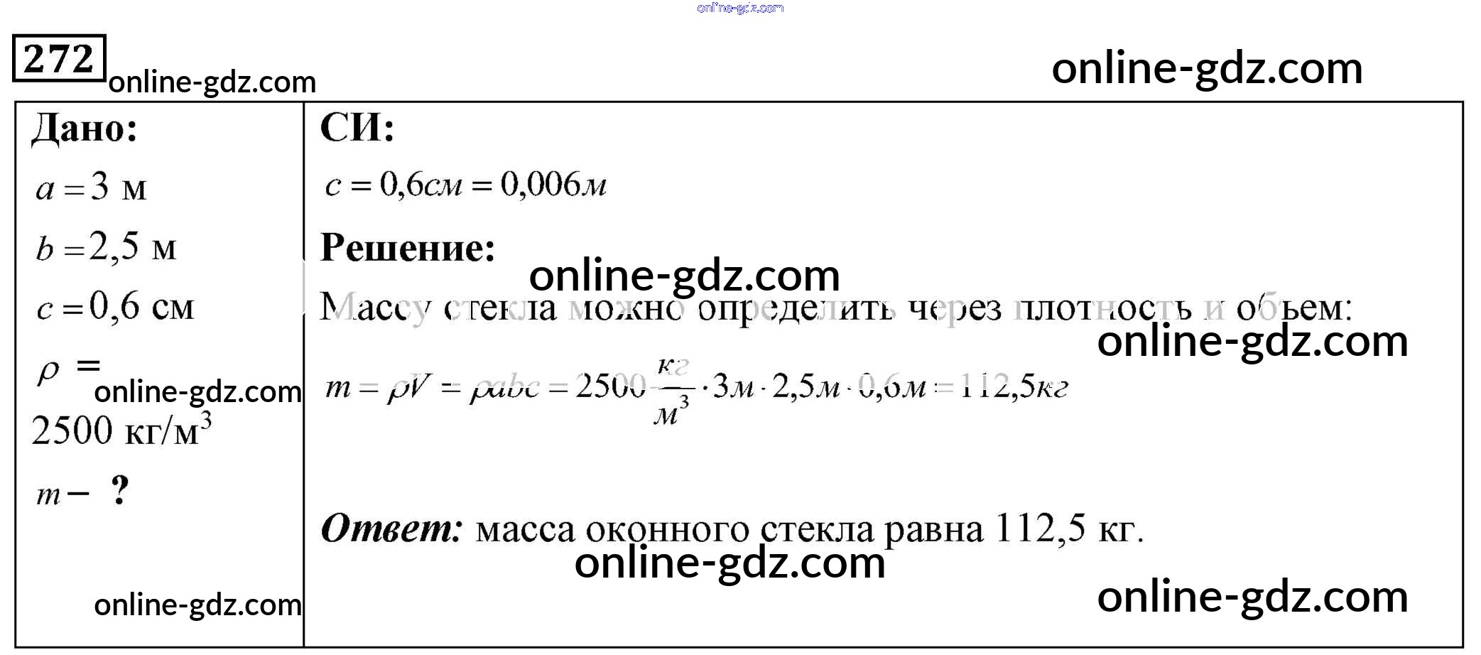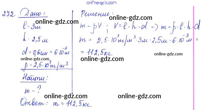 Готовые домашние задания по Физике за 7, 8, 9 класс Сборник задач Лукашик, Иванова 2011 - Задания 272