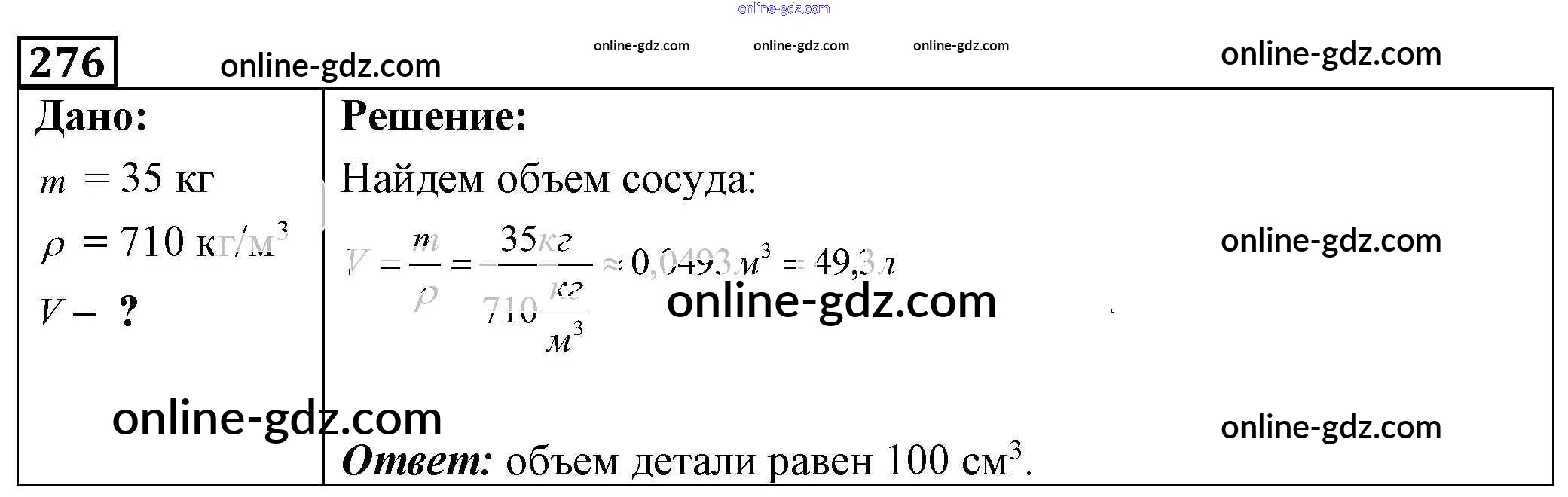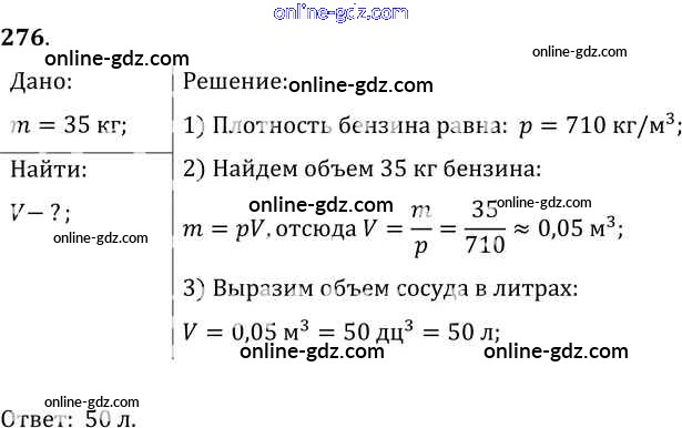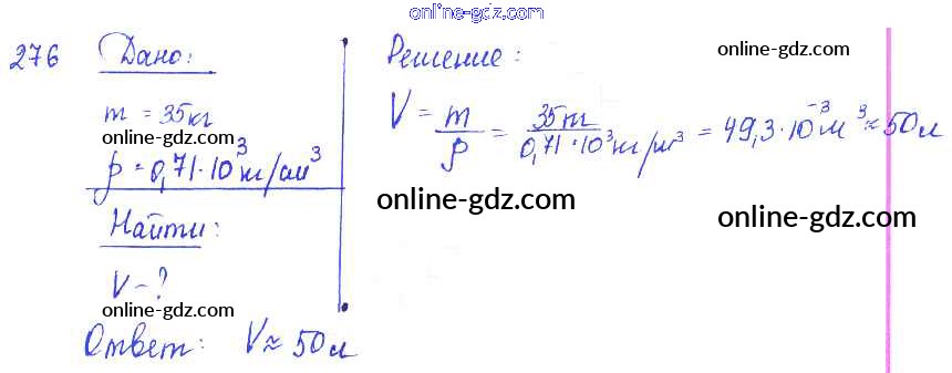 Готовые домашние задания по Физике за 7, 8, 9 класс Сборник задач Лукашик, Иванова 2011 - Задания 276