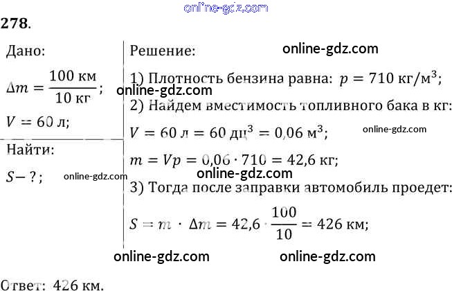 Готовые домашние задания по Физике за 7, 8, 9 класс Сборник задач Лукашик, Иванова 2011 - Задания 278