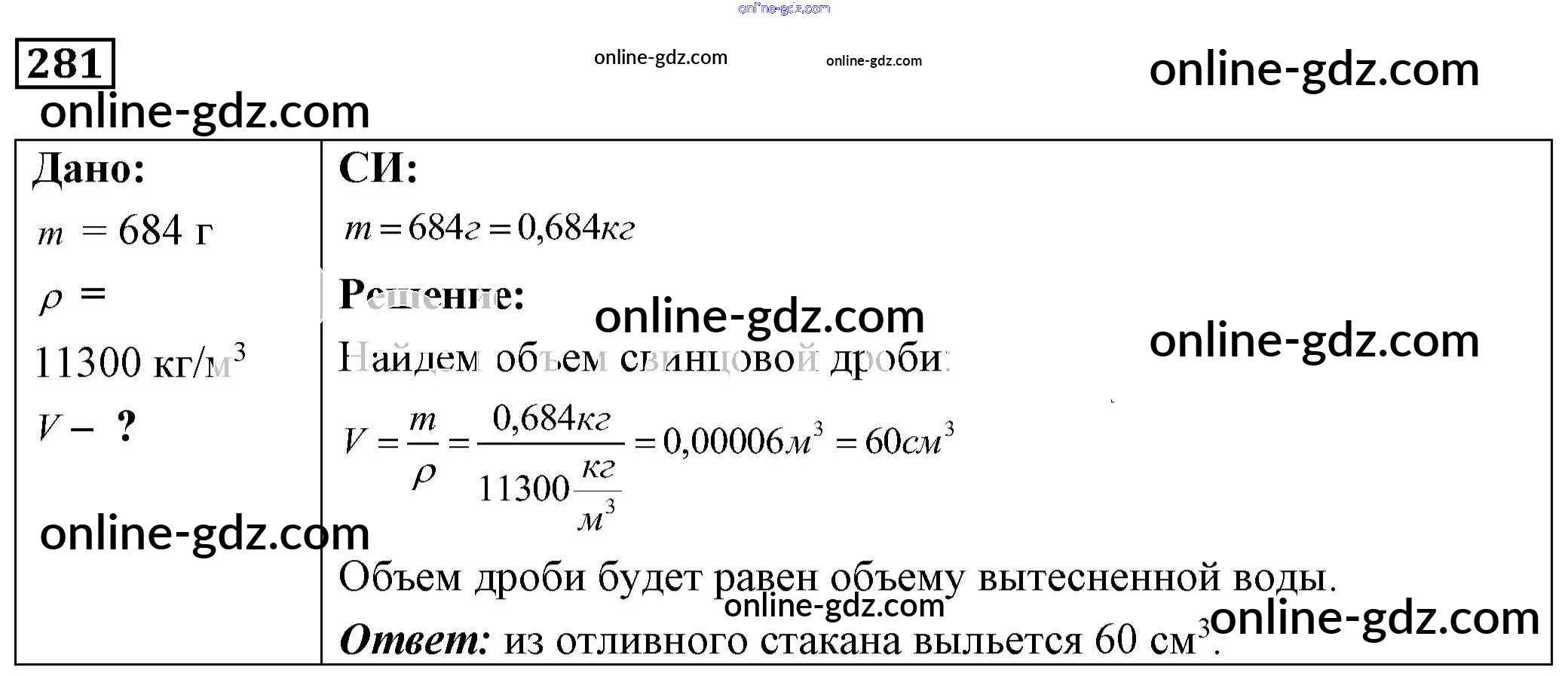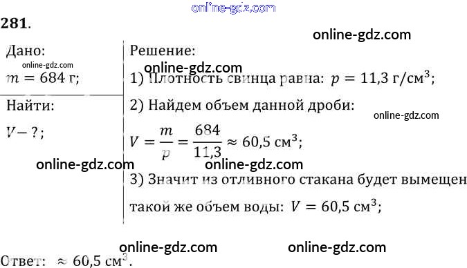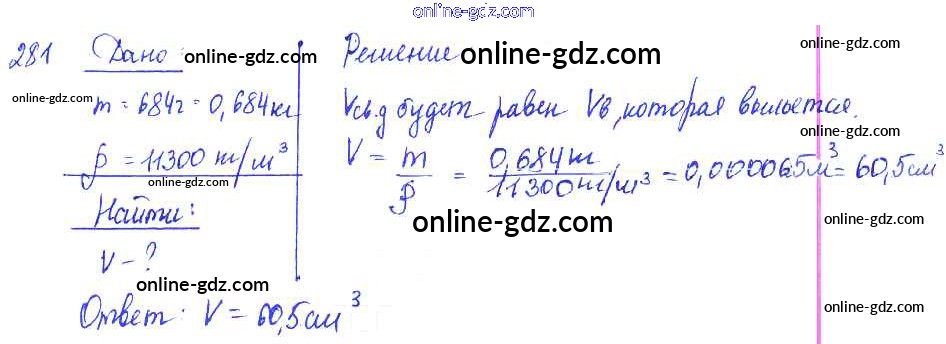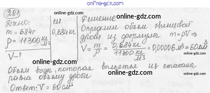Готовые домашние задания по Физике за 7, 8, 9 класс Сборник задач Лукашик, Иванова 2011 - Задания 281