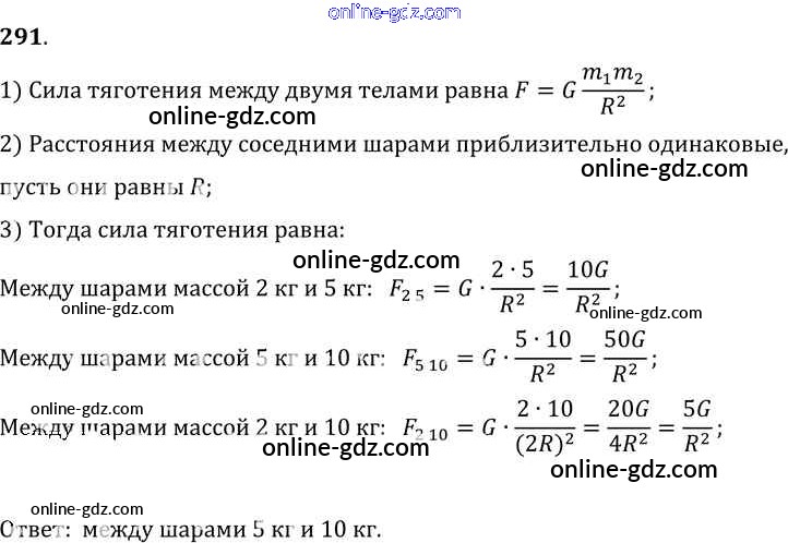 Готовые домашние задания по Физике за 7, 8, 9 класс Сборник задач Лукашик, Иванова 2011 - Задания 291