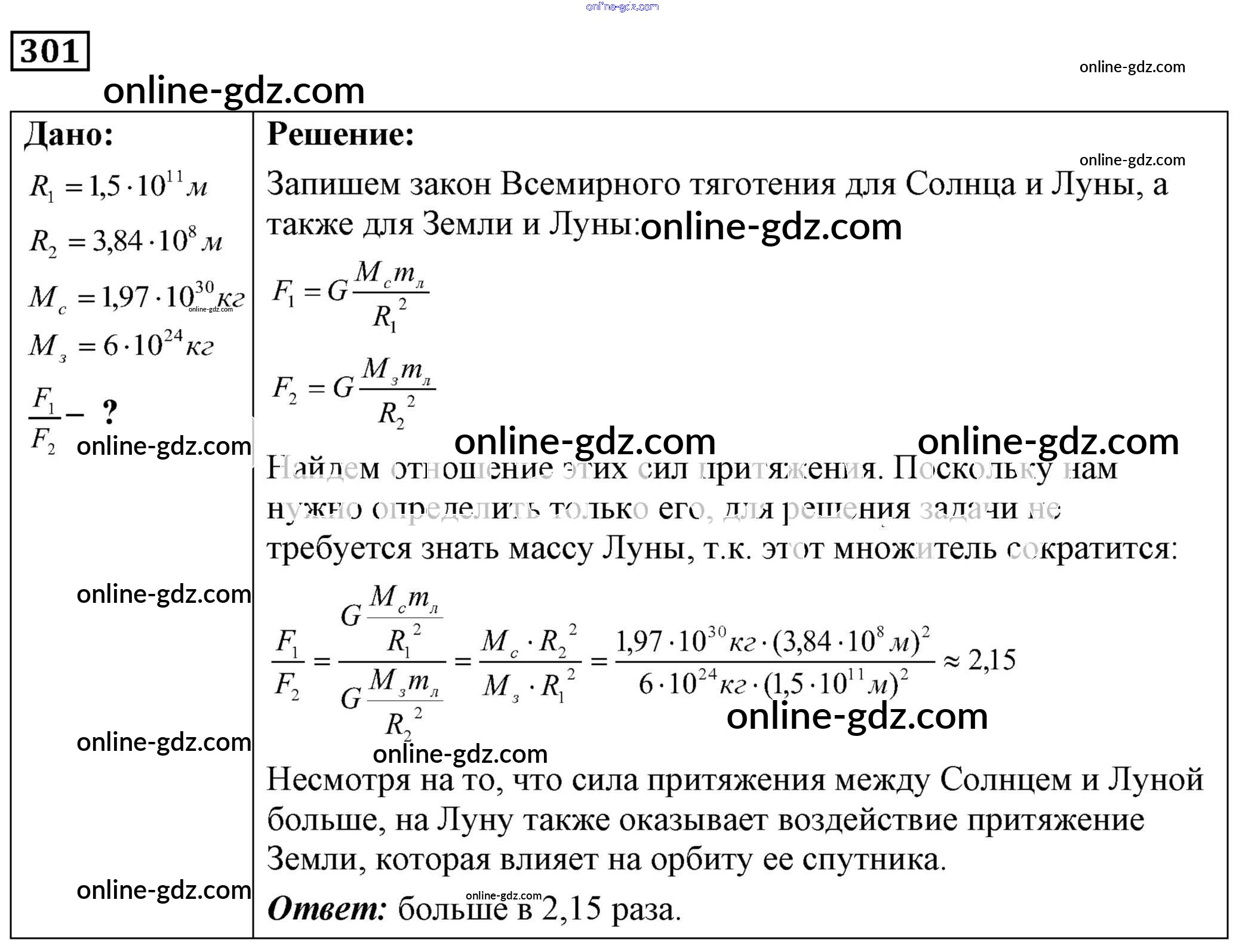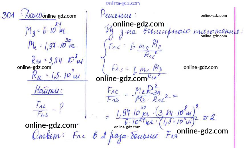 Готовые домашние задания по Физике за 7, 8, 9 класс Сборник задач Лукашик, Иванова 2011 - Задания 301