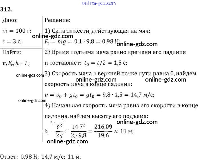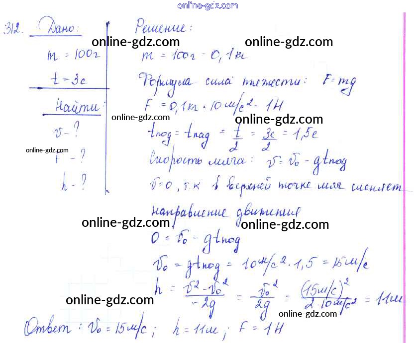 Готовые домашние задания по Физике за 7, 8, 9 класс Сборник задач Лукашик, Иванова 2011 - Задания 312