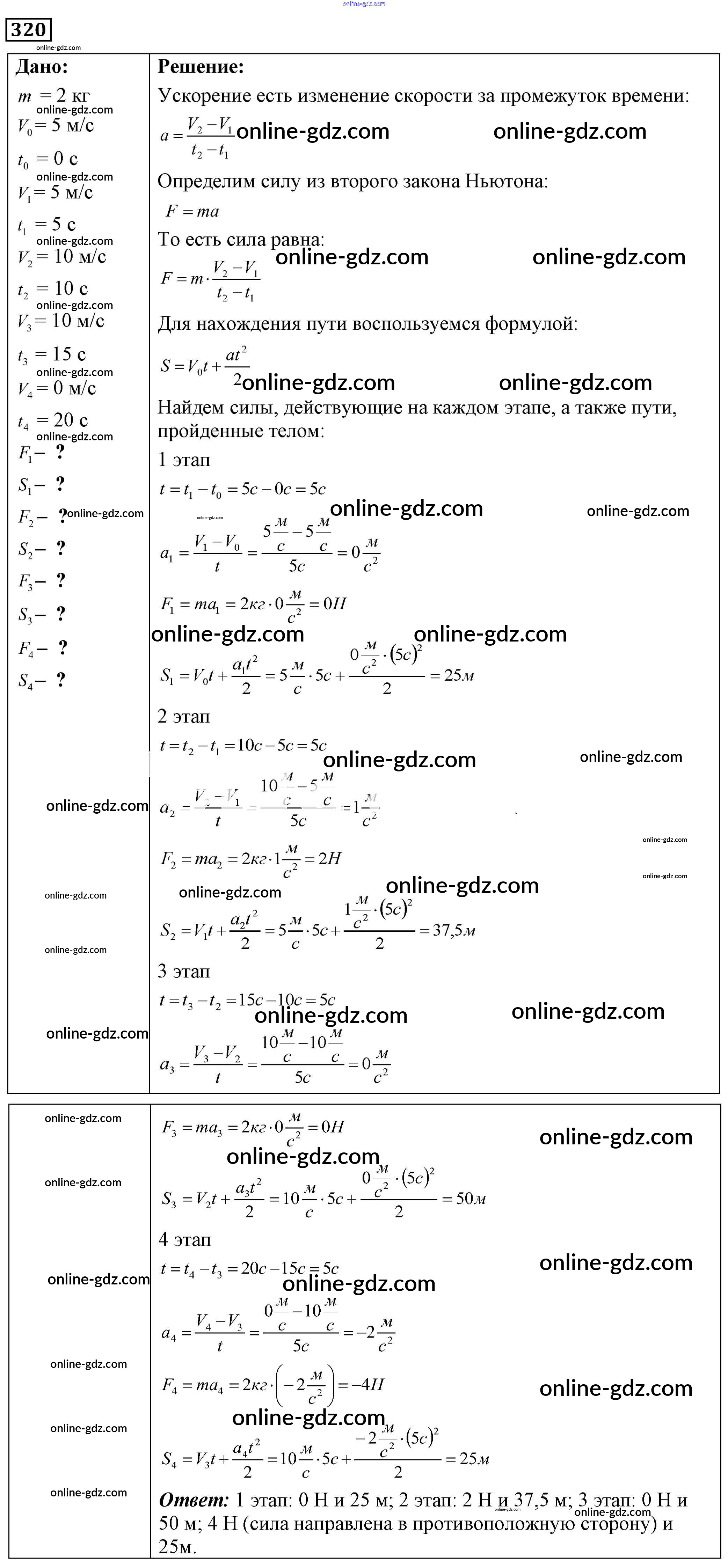 Готовые домашние задания по Физике за 7, 8, 9 класс Сборник задач Лукашик, Иванова 2011 - Задания 320