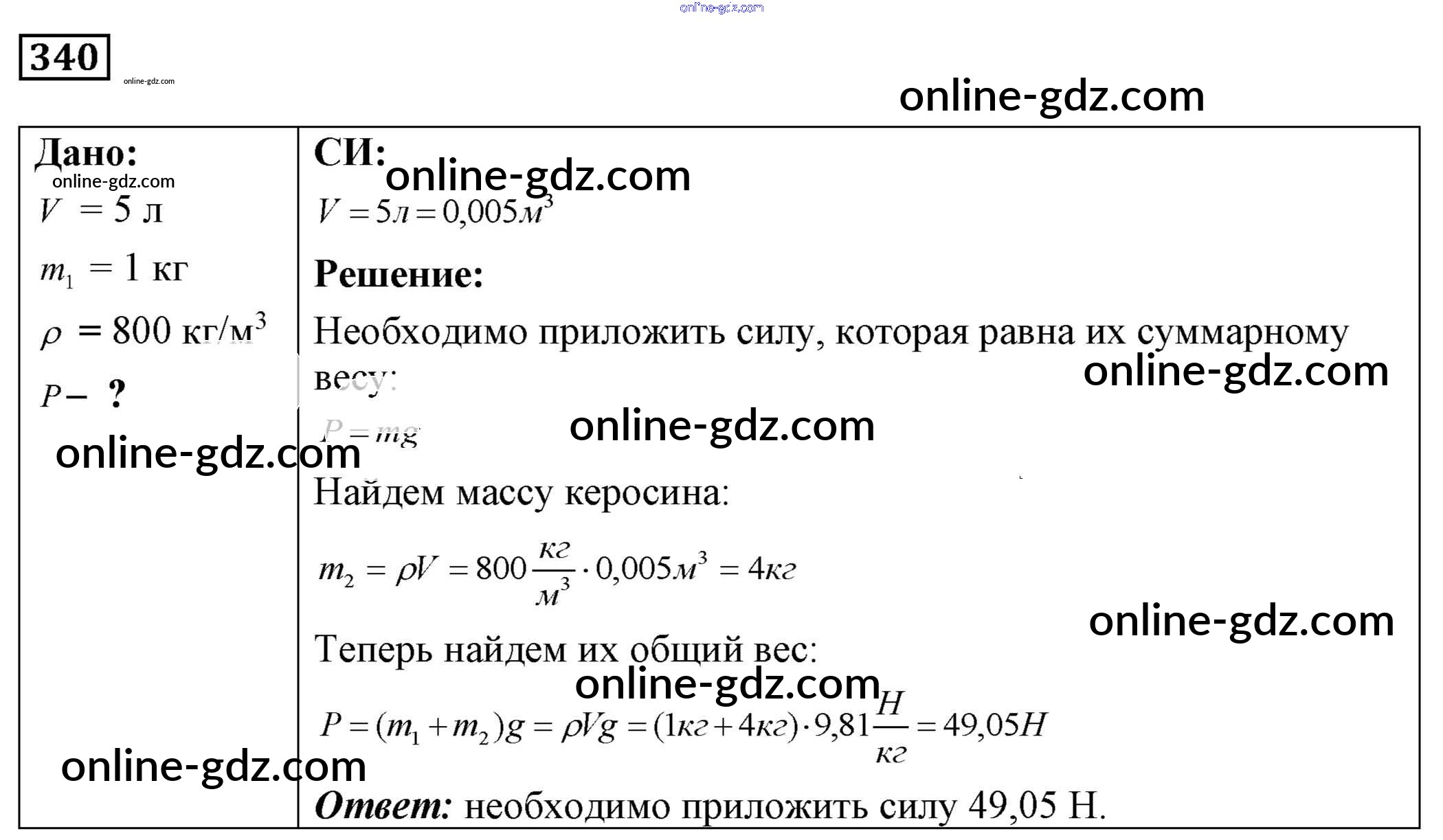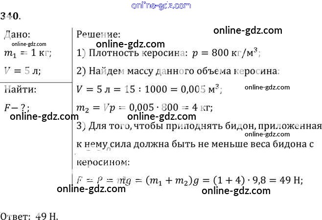 Готовые домашние задания по Физике за 7, 8, 9 класс Сборник задач Лукашик, Иванова 2011 - Задания 340