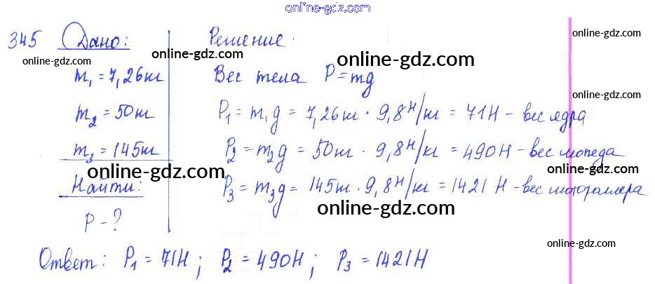 Готовые домашние задания по Физике за 7, 8, 9 класс Сборник задач Лукашик, Иванова 2011 - Задания 345