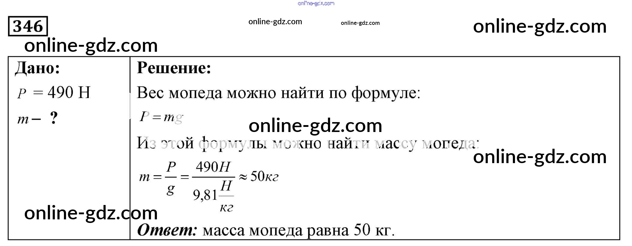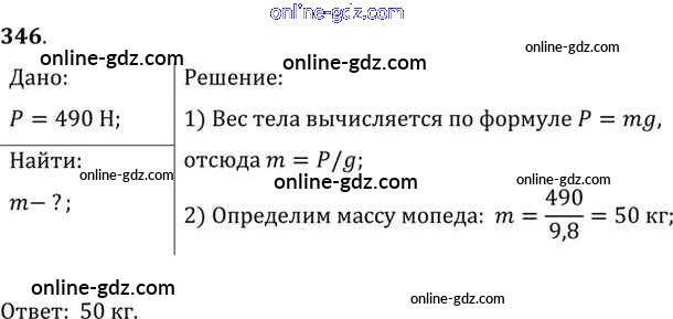 Готовые домашние задания по Физике за 7, 8, 9 класс Сборник задач Лукашик, Иванова 2011 - Задания 346