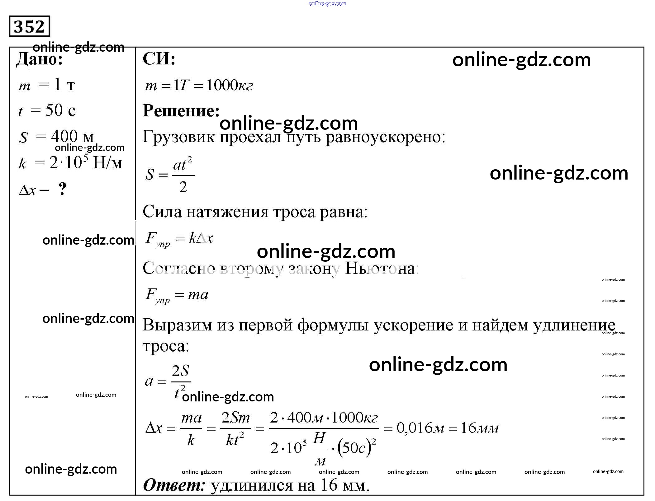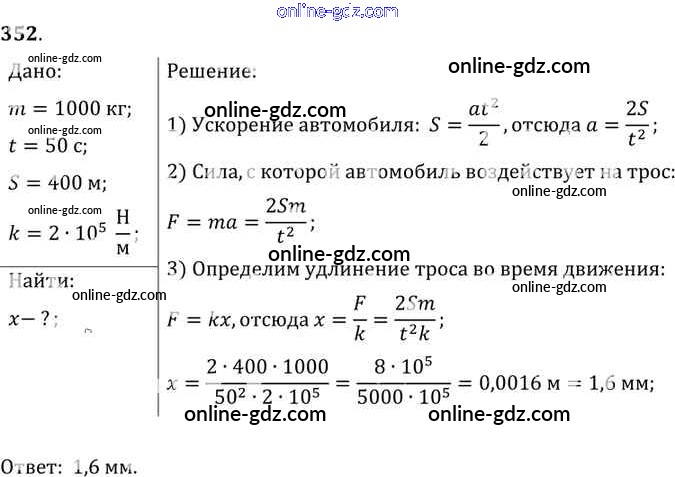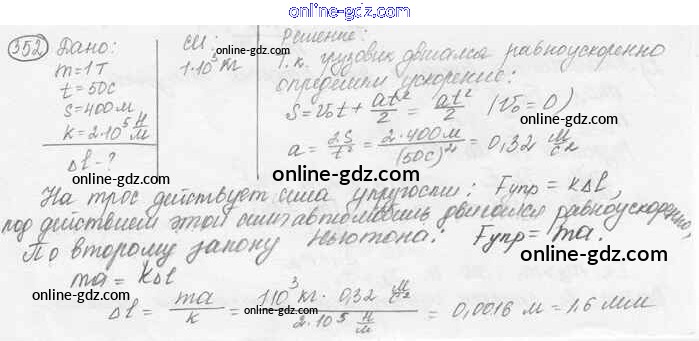 Готовые домашние задания по Физике за 7, 8, 9 класс Сборник задач Лукашик, Иванова 2011 - Задания 352