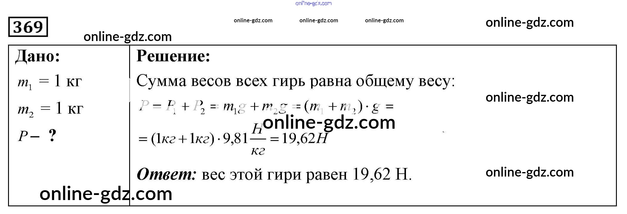 Готовые домашние задания по Физике за 7, 8, 9 класс Сборник задач Лукашик, Иванова 2011 - Задания 369