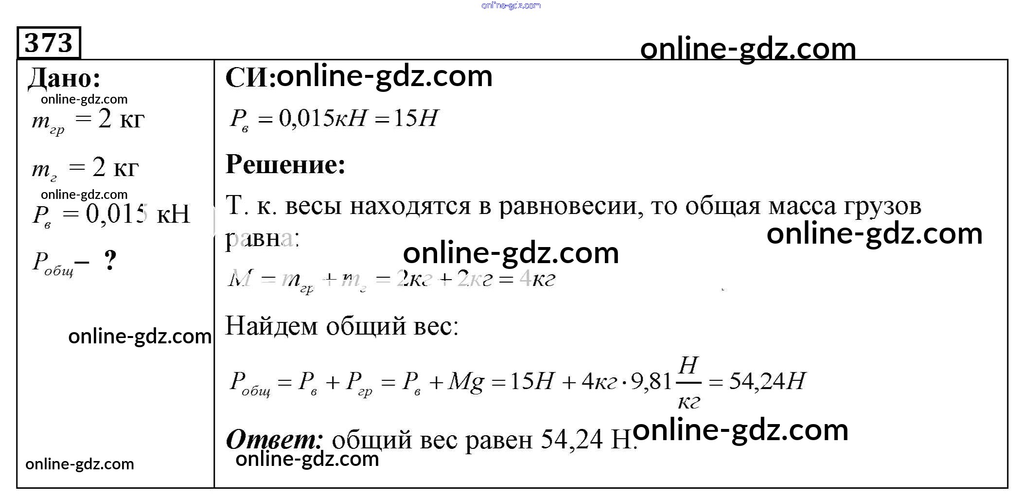 Готовые домашние задания по Физике за 7, 8, 9 класс Сборник задач Лукашик, Иванова 2011 - Задания 373