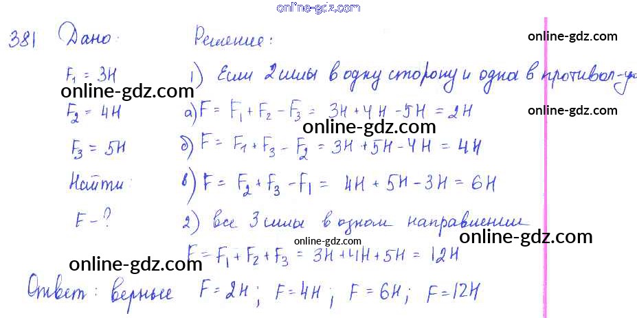 Готовые домашние задания по Физике за 7, 8, 9 класс Сборник задач Лукашик, Иванова 2011 - Задания 381