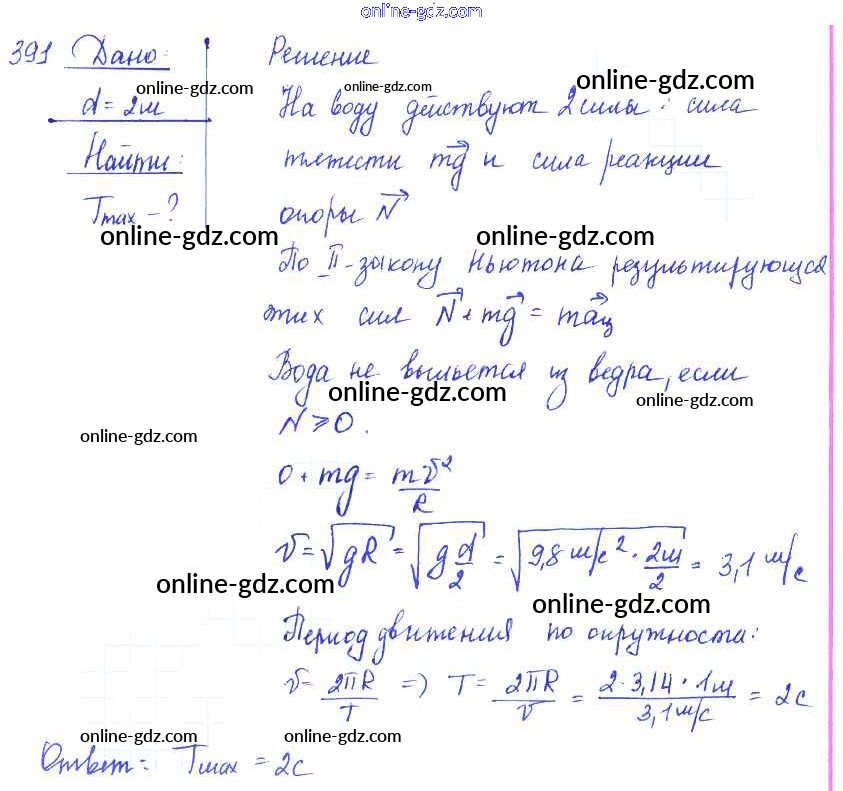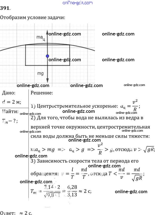 Готовые домашние задания по Физике за 7, 8, 9 класс Сборник задач Лукашик, Иванова 2011 - Задания 391