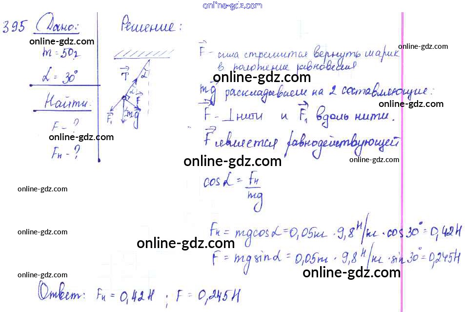 Готовые домашние задания по Физике за 7, 8, 9 класс Сборник задач Лукашик, Иванова 2011 - Задания 395