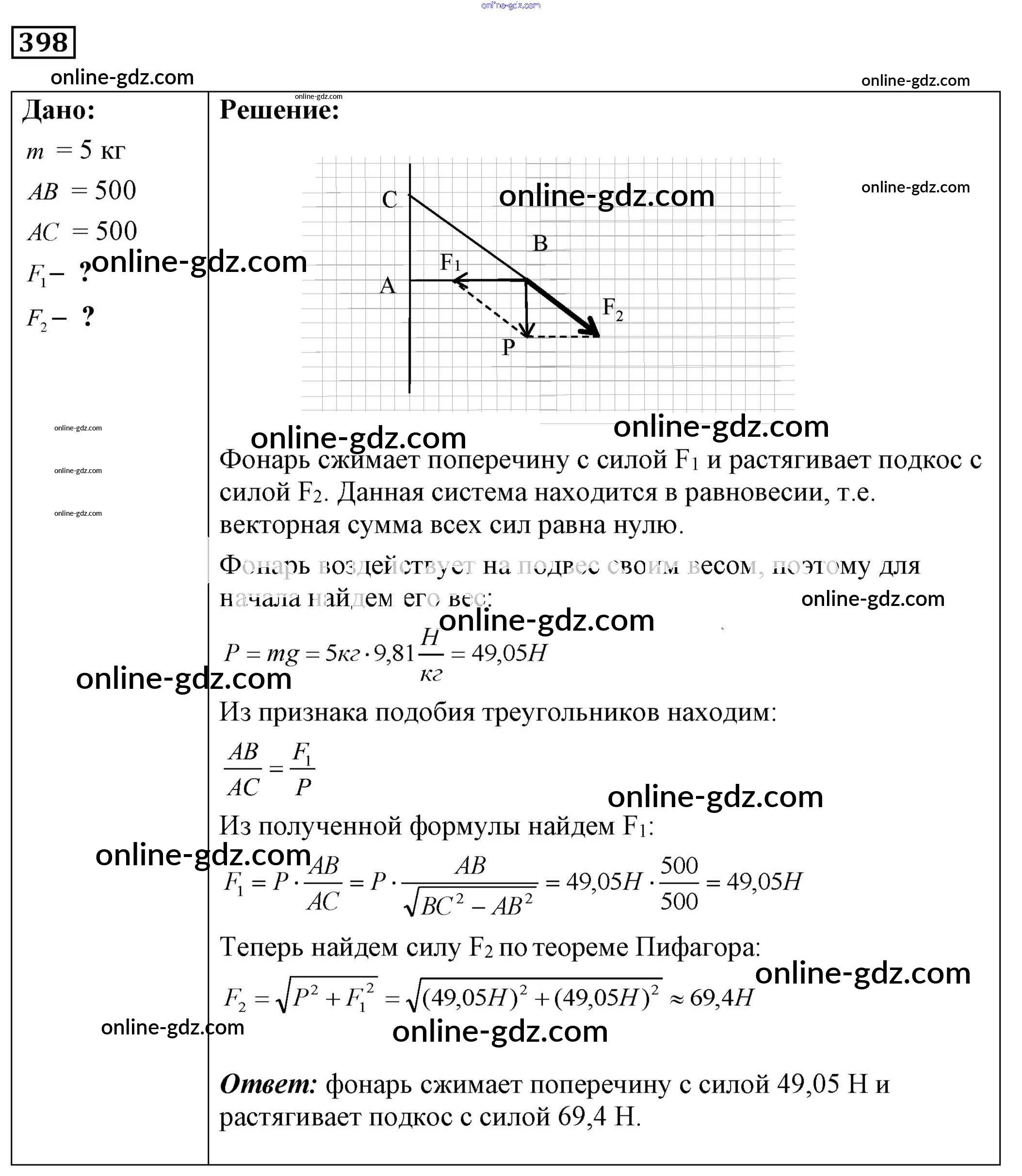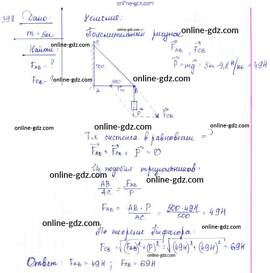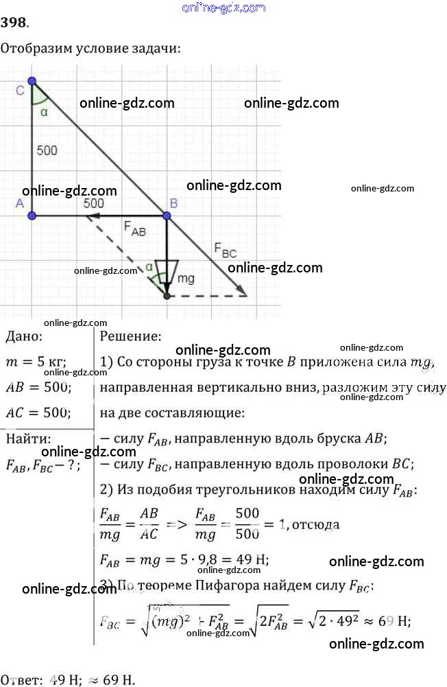 Готовые домашние задания по Физике за 7, 8, 9 класс Сборник задач Лукашик, Иванова 2011 - Задания 398