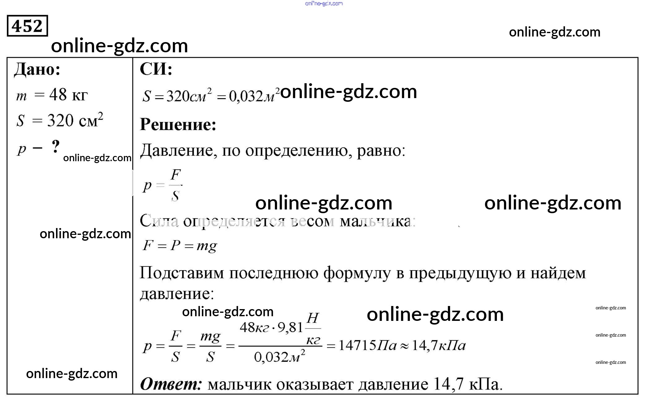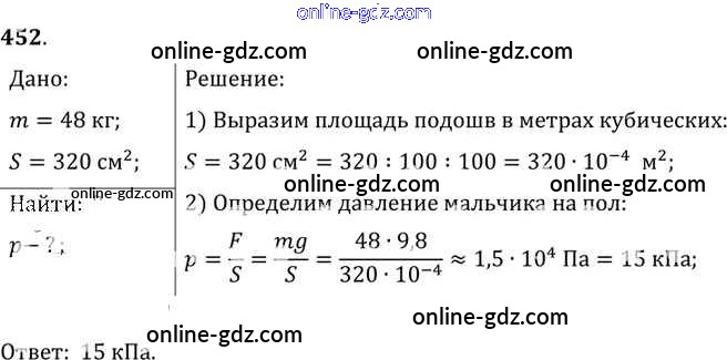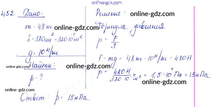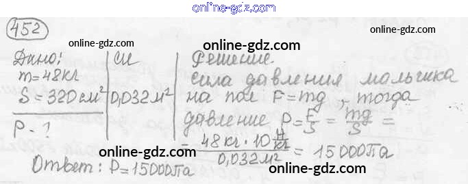 Готовые домашние задания по Физике за 7, 8, 9 класс Сборник задач Лукашик, Иванова 2011 - Задания 452