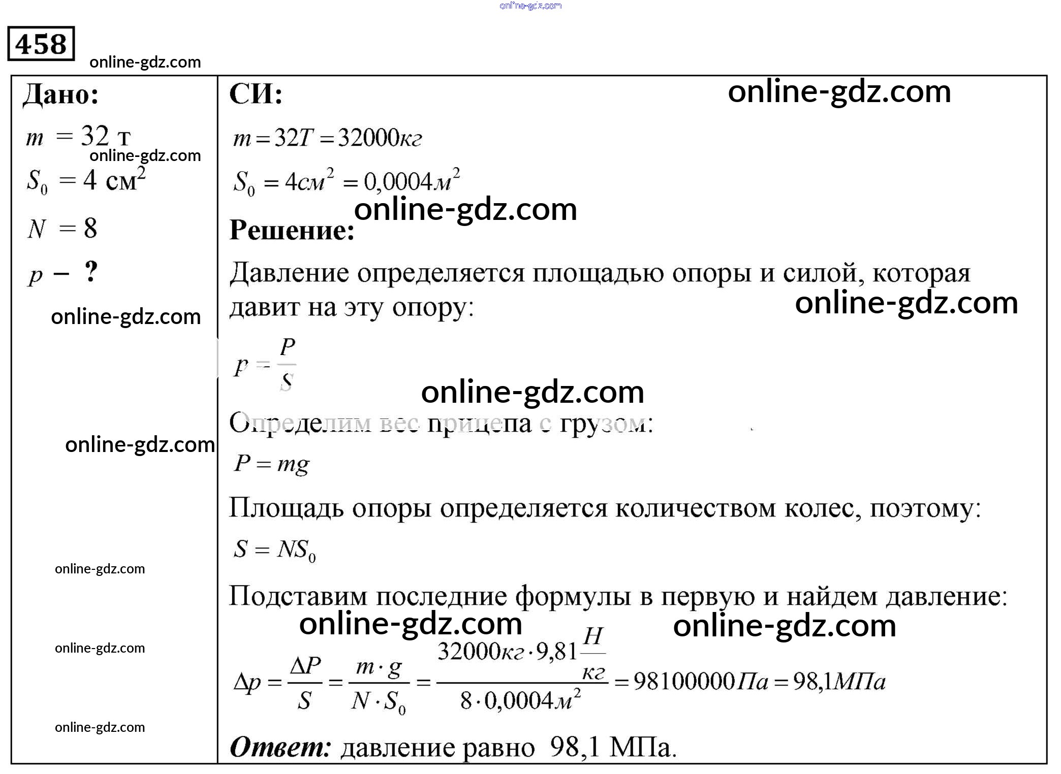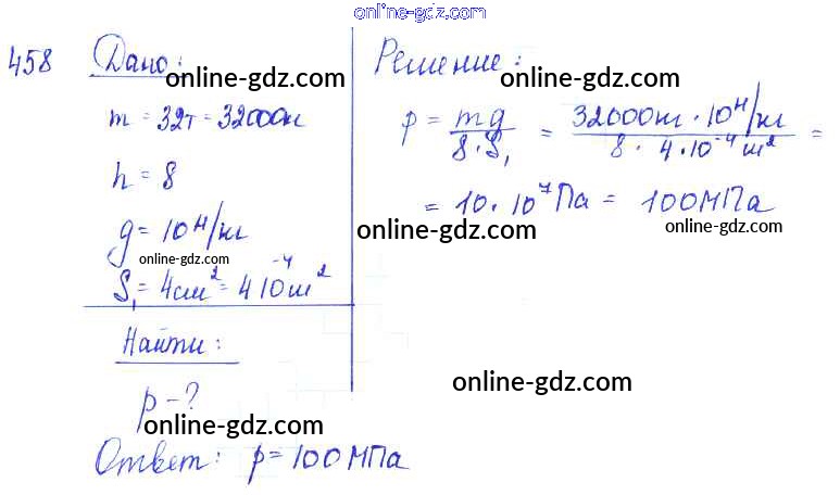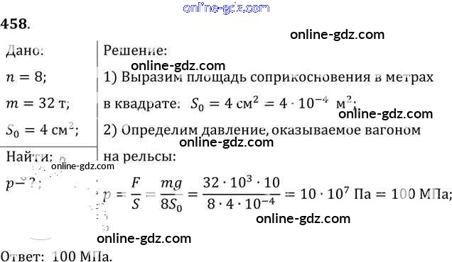 Готовые домашние задания по Физике за 7, 8, 9 класс Сборник задач Лукашик, Иванова 2011 - Задания 458