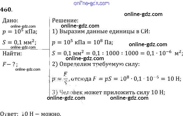 Готовые домашние задания по Физике за 7, 8, 9 класс Сборник задач Лукашик, Иванова 2011 - Задания 460