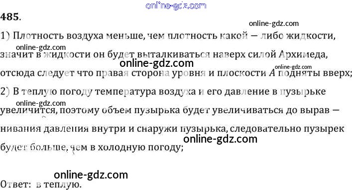Готовые домашние задания по Физике за 7, 8, 9 класс Сборник задач Лукашик, Иванова 2011 - Задания 485