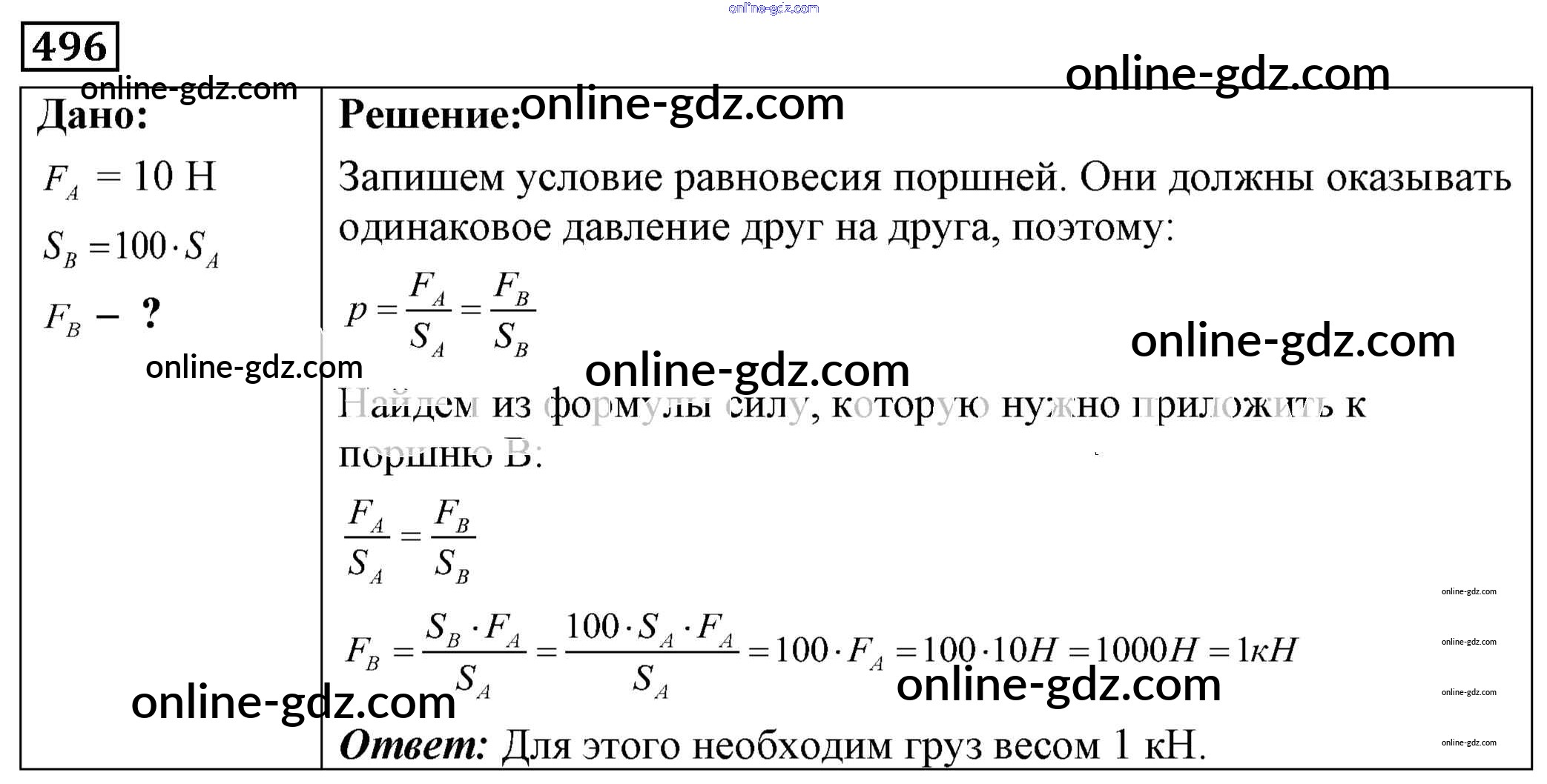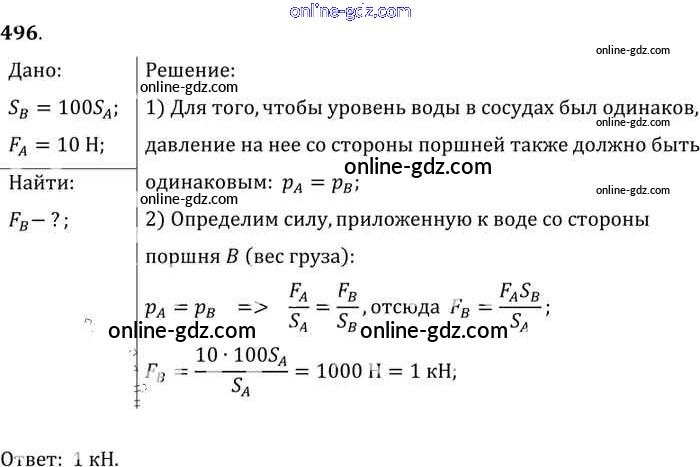 Готовые домашние задания по Физике за 7, 8, 9 класс Сборник задач Лукашик, Иванова 2011 - Задания 496