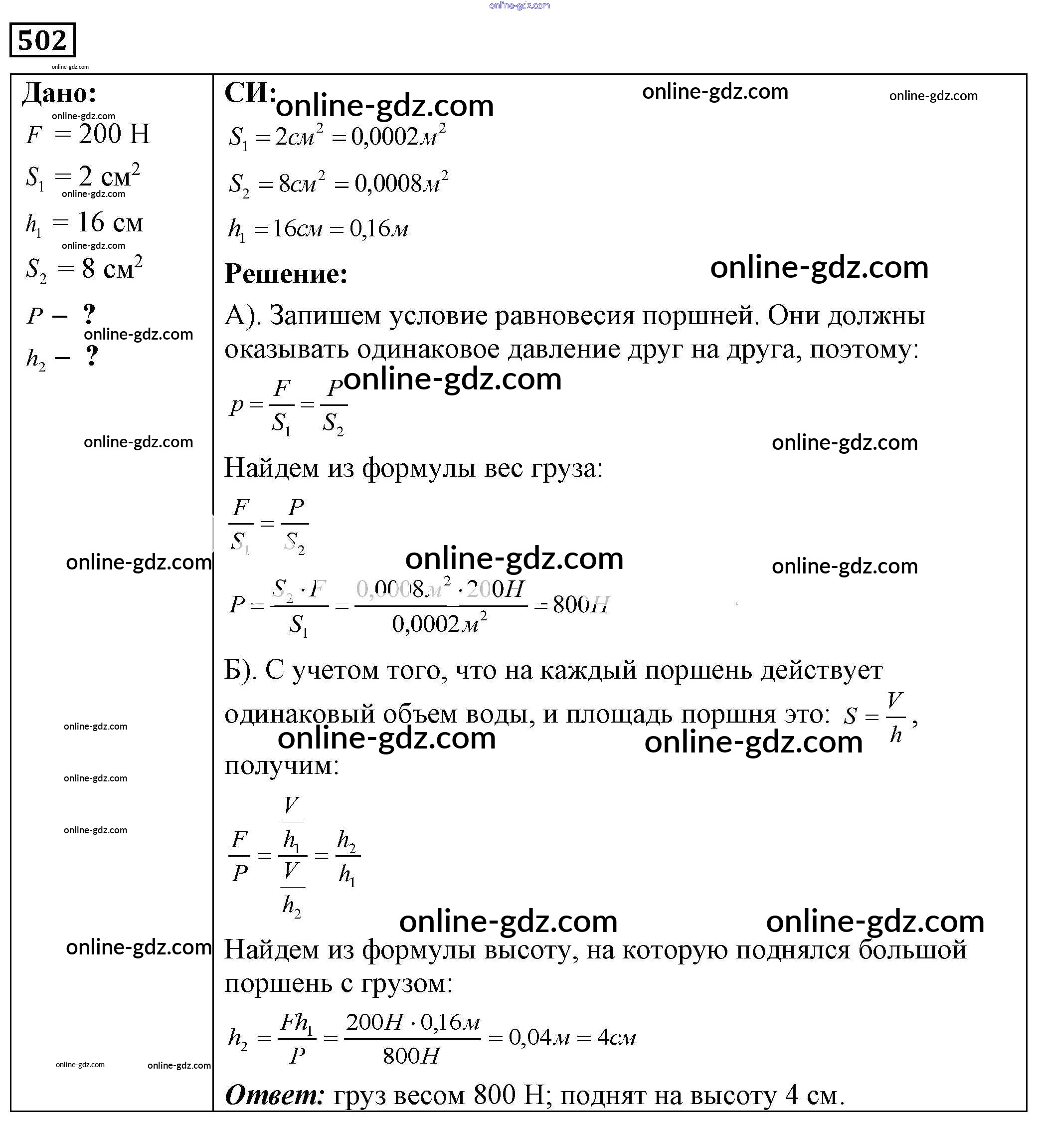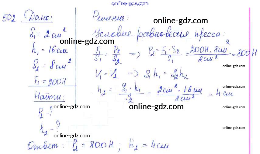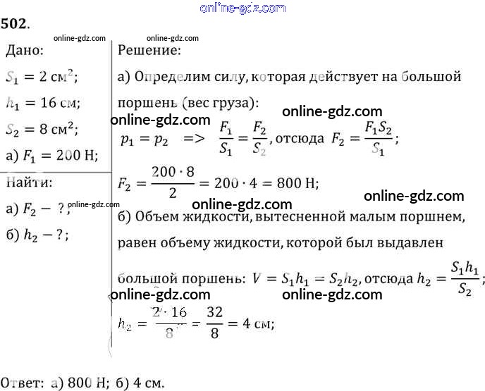 Готовые домашние задания по Физике за 7, 8, 9 класс Сборник задач Лукашик, Иванова 2011 - Задания 502