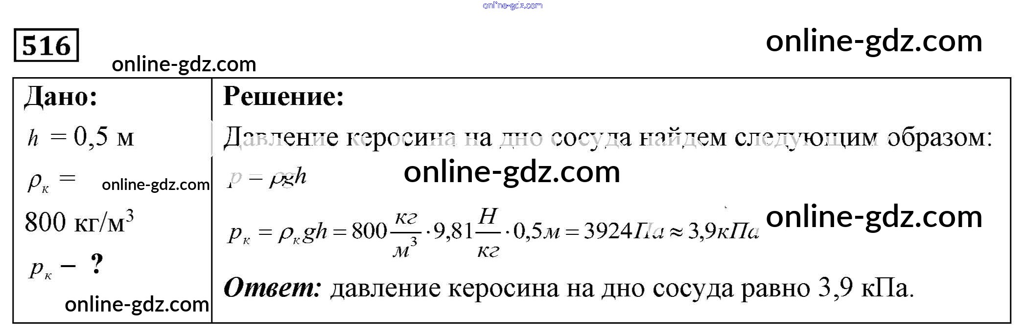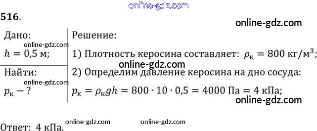 Готовые домашние задания по Физике за 7, 8, 9 класс Сборник задач Лукашик, Иванова 2011 - Задания 516