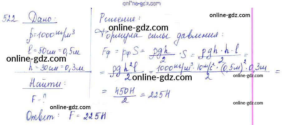 Готовые домашние задания по Физике за 7, 8, 9 класс Сборник задач Лукашик, Иванова 2011 - Задания 522