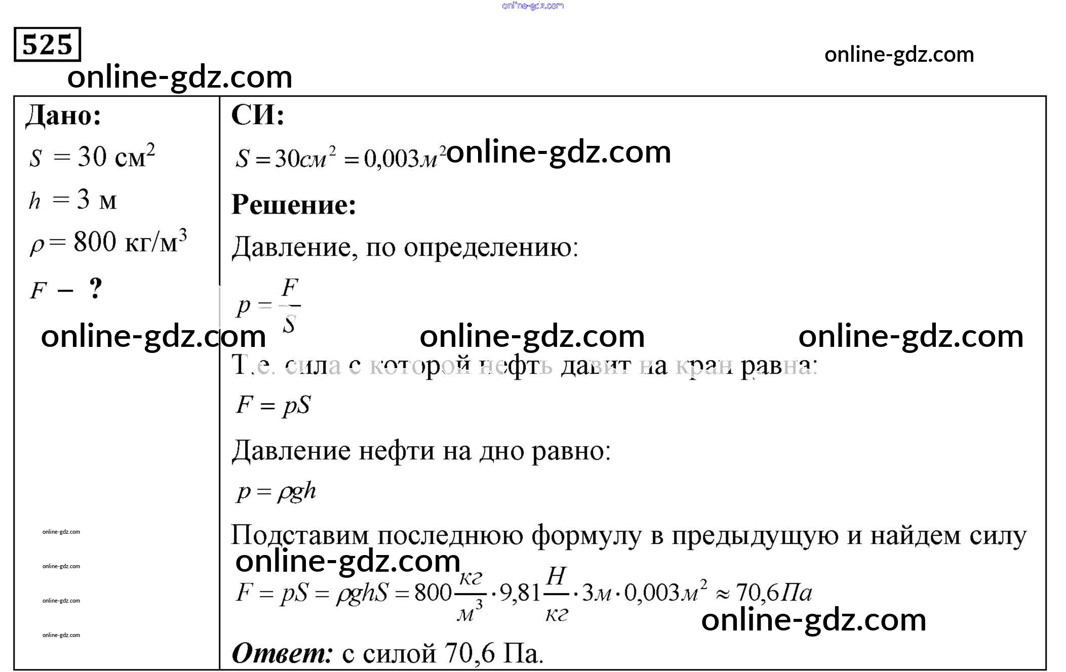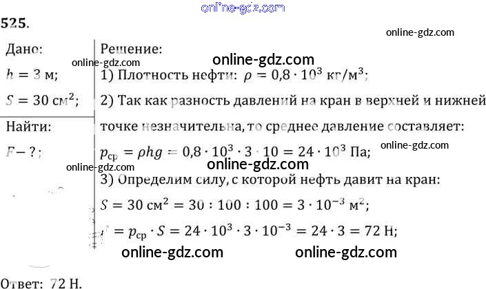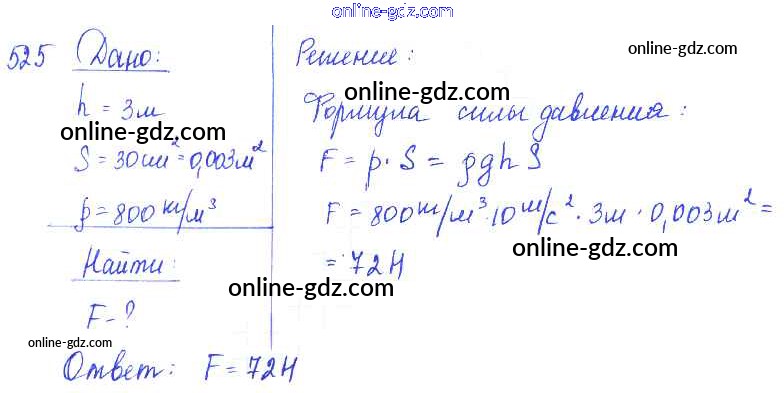 Готовые домашние задания по Физике за 7, 8, 9 класс Сборник задач Лукашик, Иванова 2011 - Задания 525