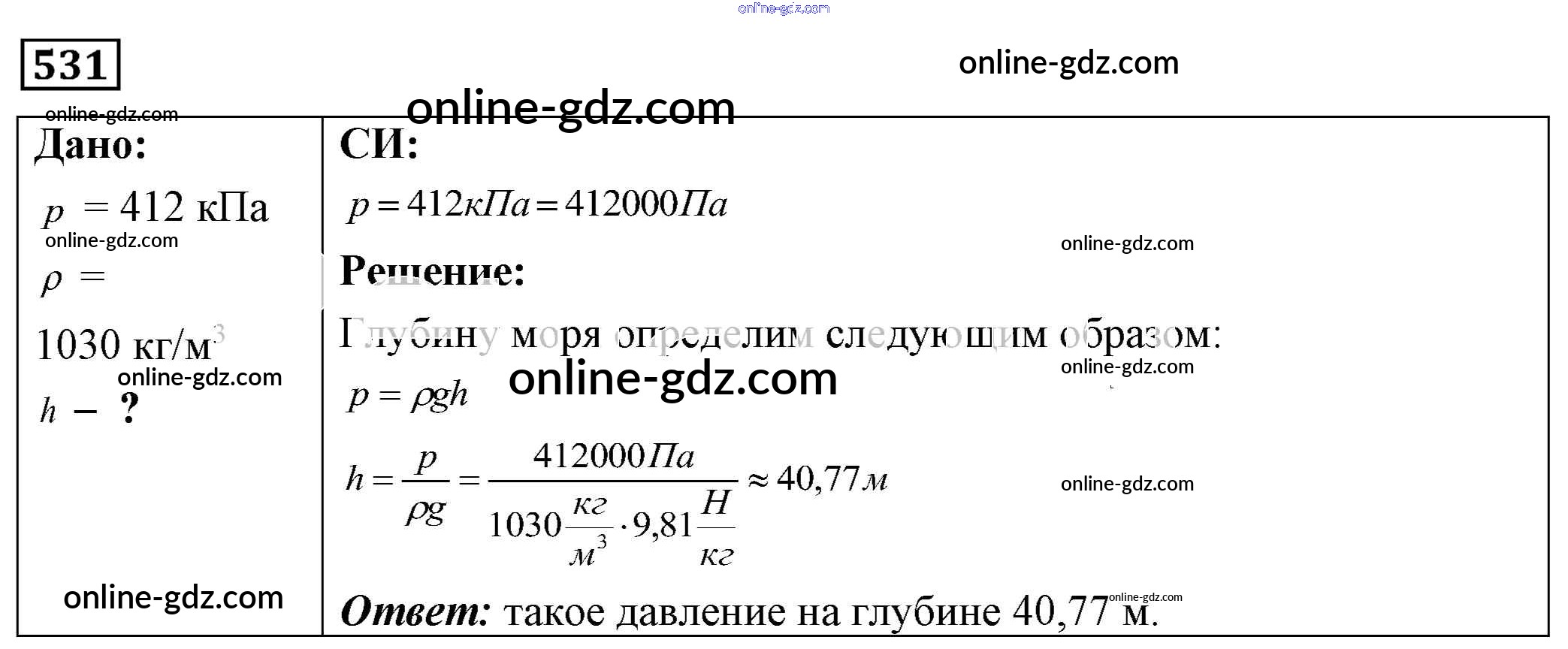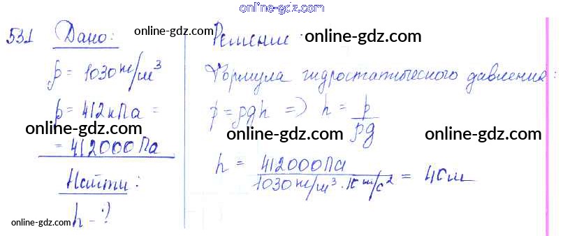 Готовые домашние задания по Физике за 7, 8, 9 класс Сборник задач Лукашик, Иванова 2011 - Задания 531