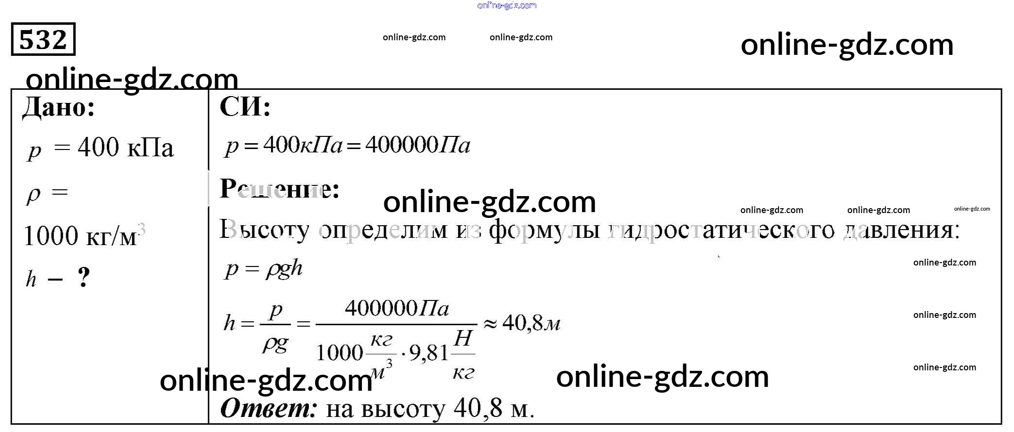 Готовые домашние задания по Физике за 7, 8, 9 класс Сборник задач Лукашик, Иванова 2011 - Задания 532