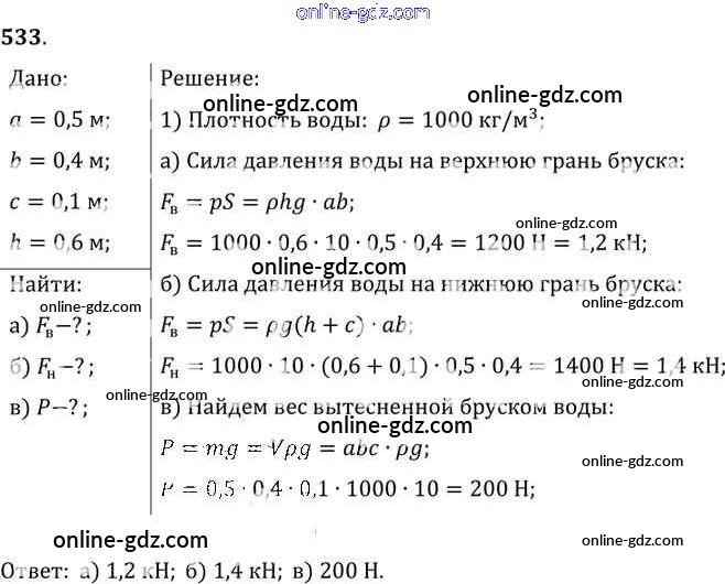 Готовые домашние задания по Физике за 7, 8, 9 класс Сборник задач Лукашик, Иванова 2011 - Задания 533