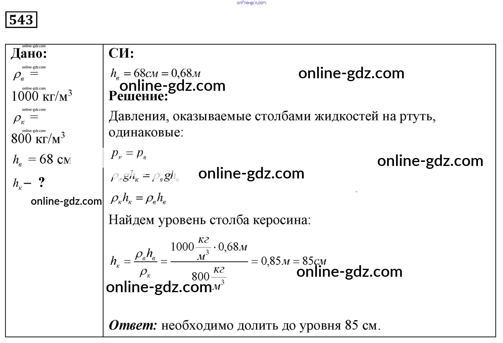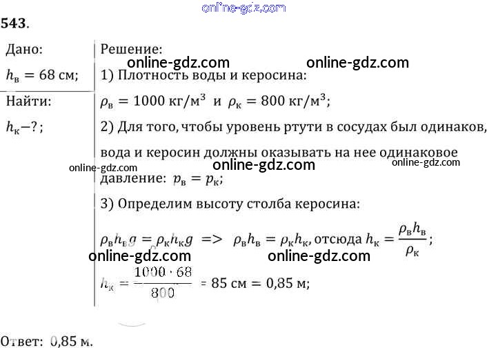 Готовые домашние задания по Физике за 7, 8, 9 класс Сборник задач Лукашик, Иванова 2011 - Задания 543