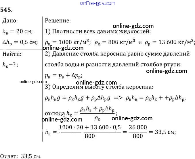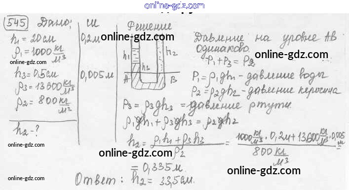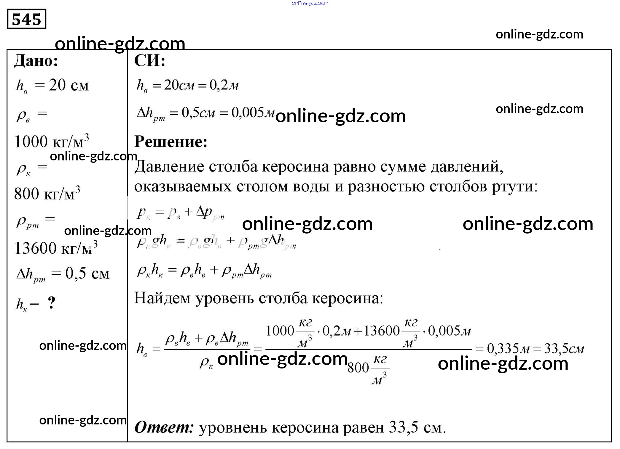Готовые домашние задания по Физике за 7, 8, 9 класс Сборник задач Лукашик, Иванова 2011 - Задания 545