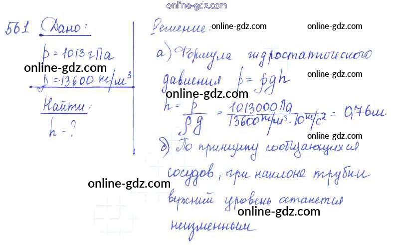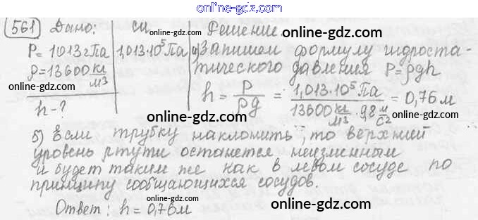 Готовые домашние задания по Физике за 7, 8, 9 класс Сборник задач Лукашик, Иванова 2011 - Задания 561