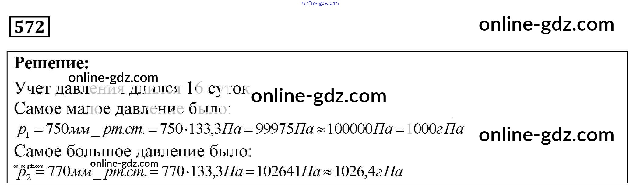Готовые домашние задания по Физике за 7, 8, 9 класс Сборник задач Лукашик, Иванова 2011 - Задания 572