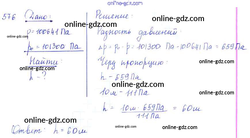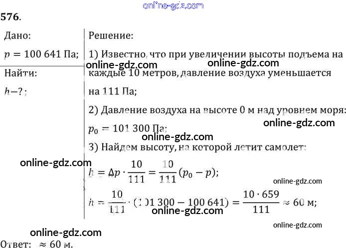 Готовые домашние задания по Физике за 7, 8, 9 класс Сборник задач Лукашик, Иванова 2011 - Задания 576