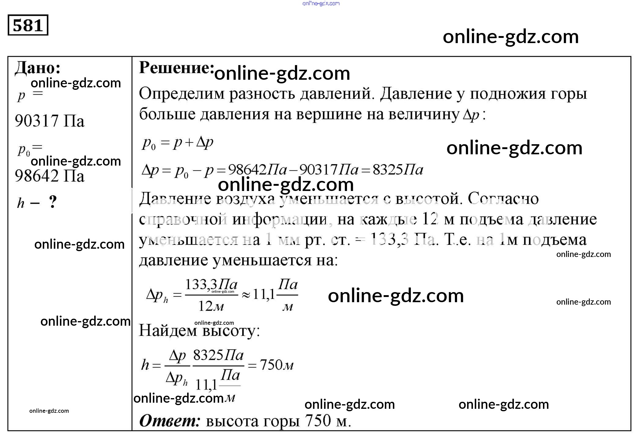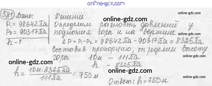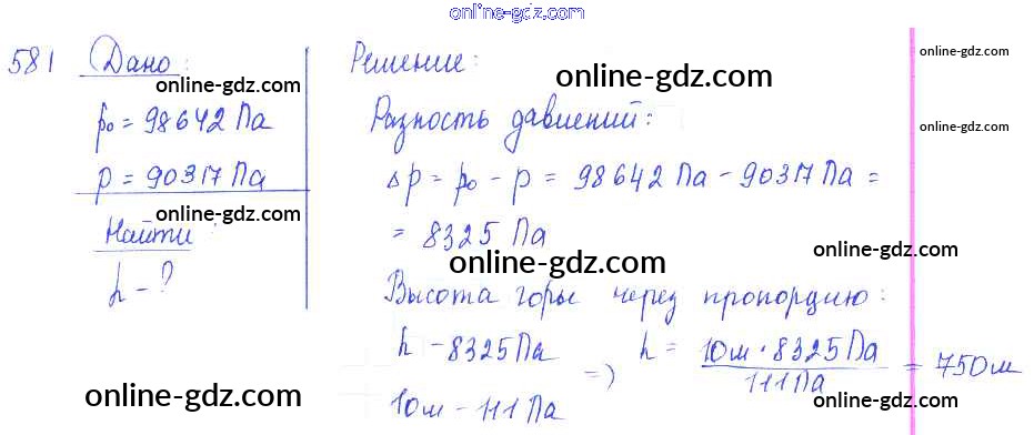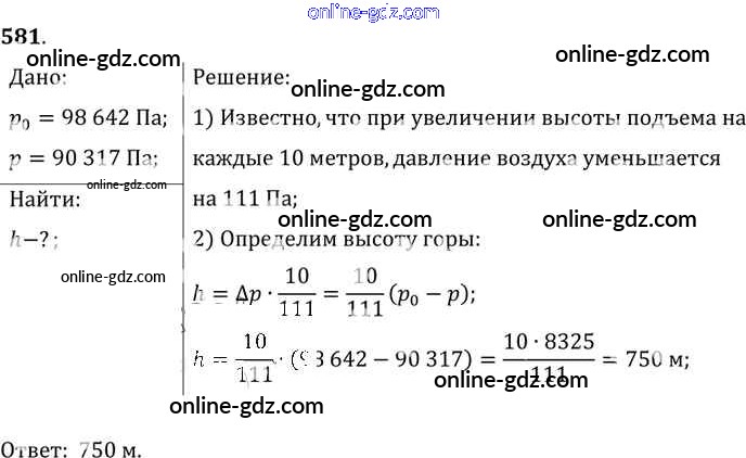 Готовые домашние задания по Физике за 7, 8, 9 класс Сборник задач Лукашик, Иванова 2011 - Задания 581