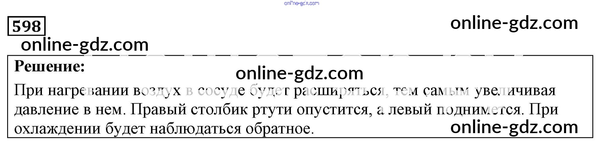 Готовые домашние задания по Физике за 7, 8, 9 класс Сборник задач Лукашик, Иванова 2011 - Задания 598