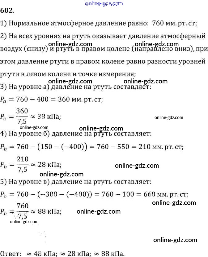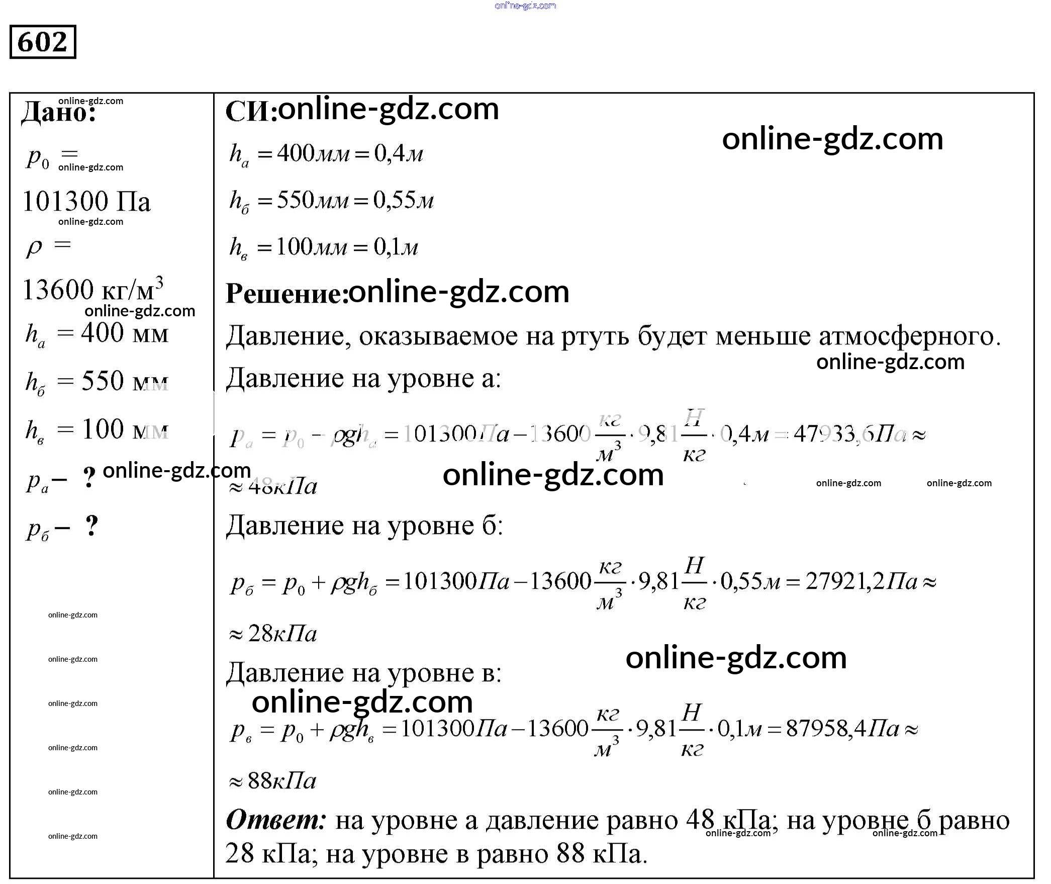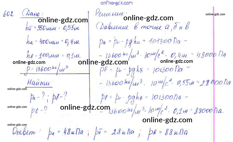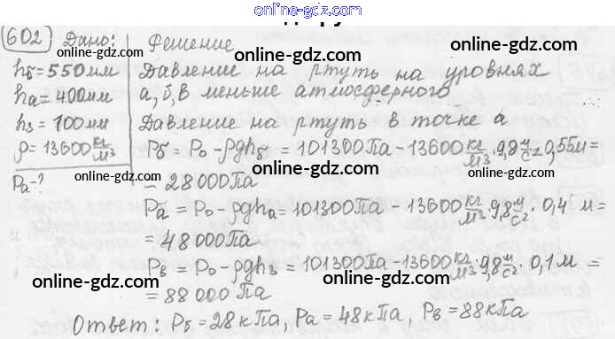 Готовые домашние задания по Физике за 7, 8, 9 класс Сборник задач Лукашик, Иванова 2011 - Задания 602