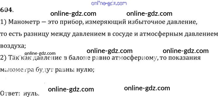 Готовые домашние задания по Физике за 7, 8, 9 класс Сборник задач Лукашик, Иванова 2011 - Задания 604