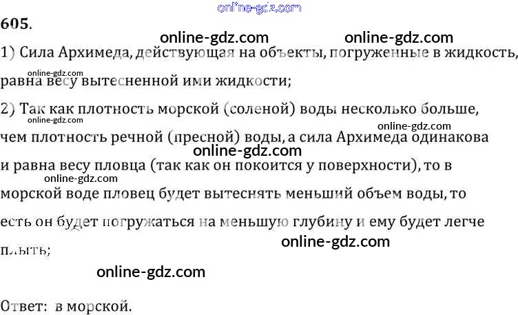 Готовые домашние задания по Физике за 7, 8, 9 класс Сборник задач Лукашик, Иванова 2011 - Задания 605