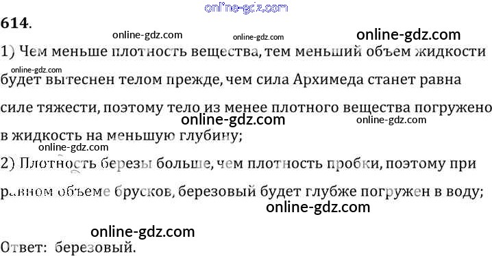 Готовые домашние задания по Физике за 7, 8, 9 класс Сборник задач Лукашик, Иванова 2011 - Задания 614