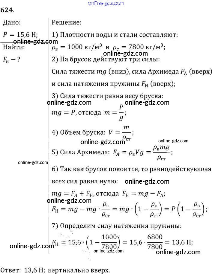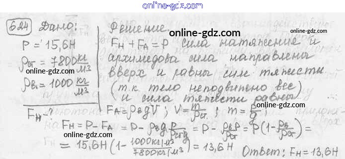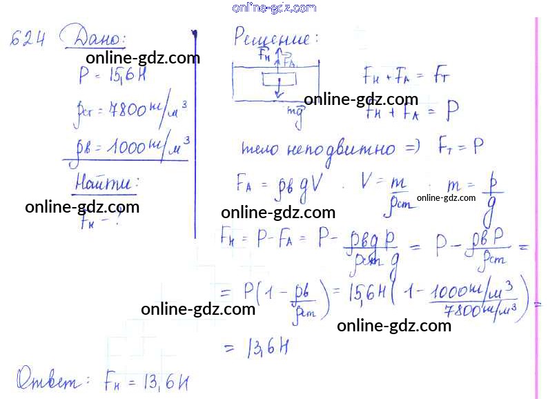 Готовые домашние задания по Физике за 7, 8, 9 класс Сборник задач Лукашик, Иванова 2011 - Задания 624
