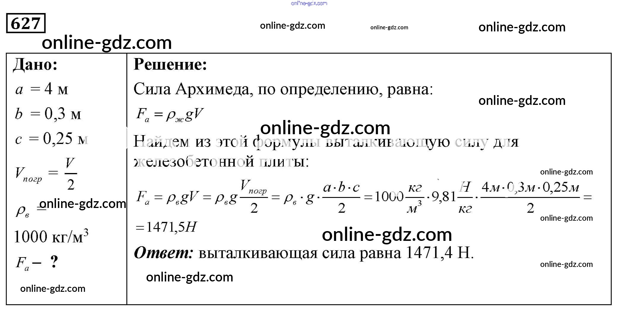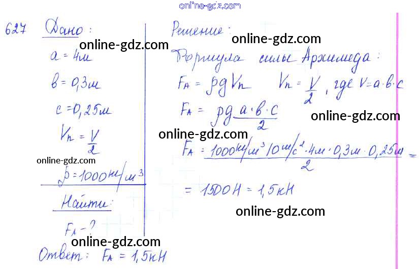 Готовые домашние задания по Физике за 7, 8, 9 класс Сборник задач Лукашик, Иванова 2011 - Задания 627