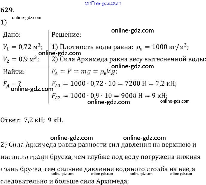 Готовые домашние задания по Физике за 7, 8, 9 класс Сборник задач Лукашик, Иванова 2011 - Задания 629