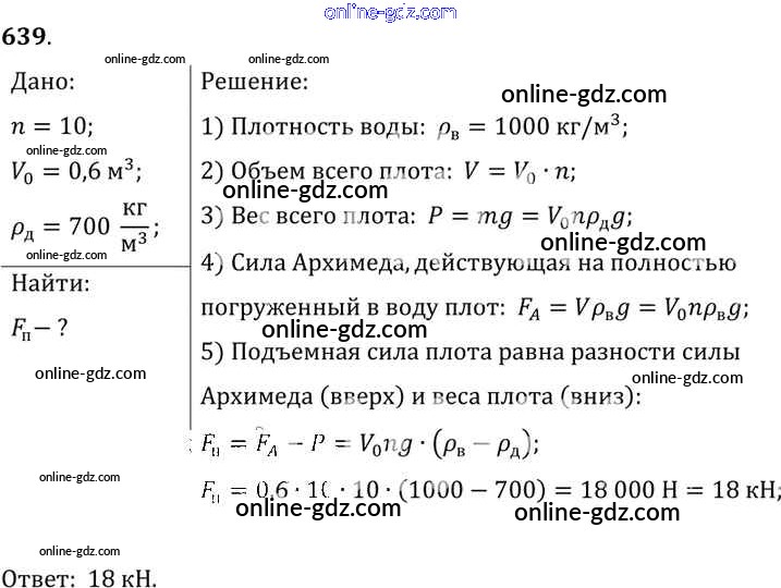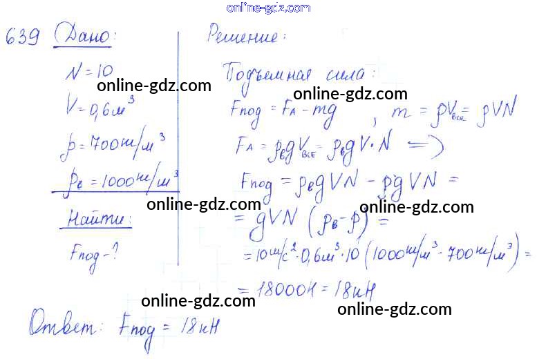 Готовые домашние задания по Физике за 7, 8, 9 класс Сборник задач Лукашик, Иванова 2011 - Задания 639