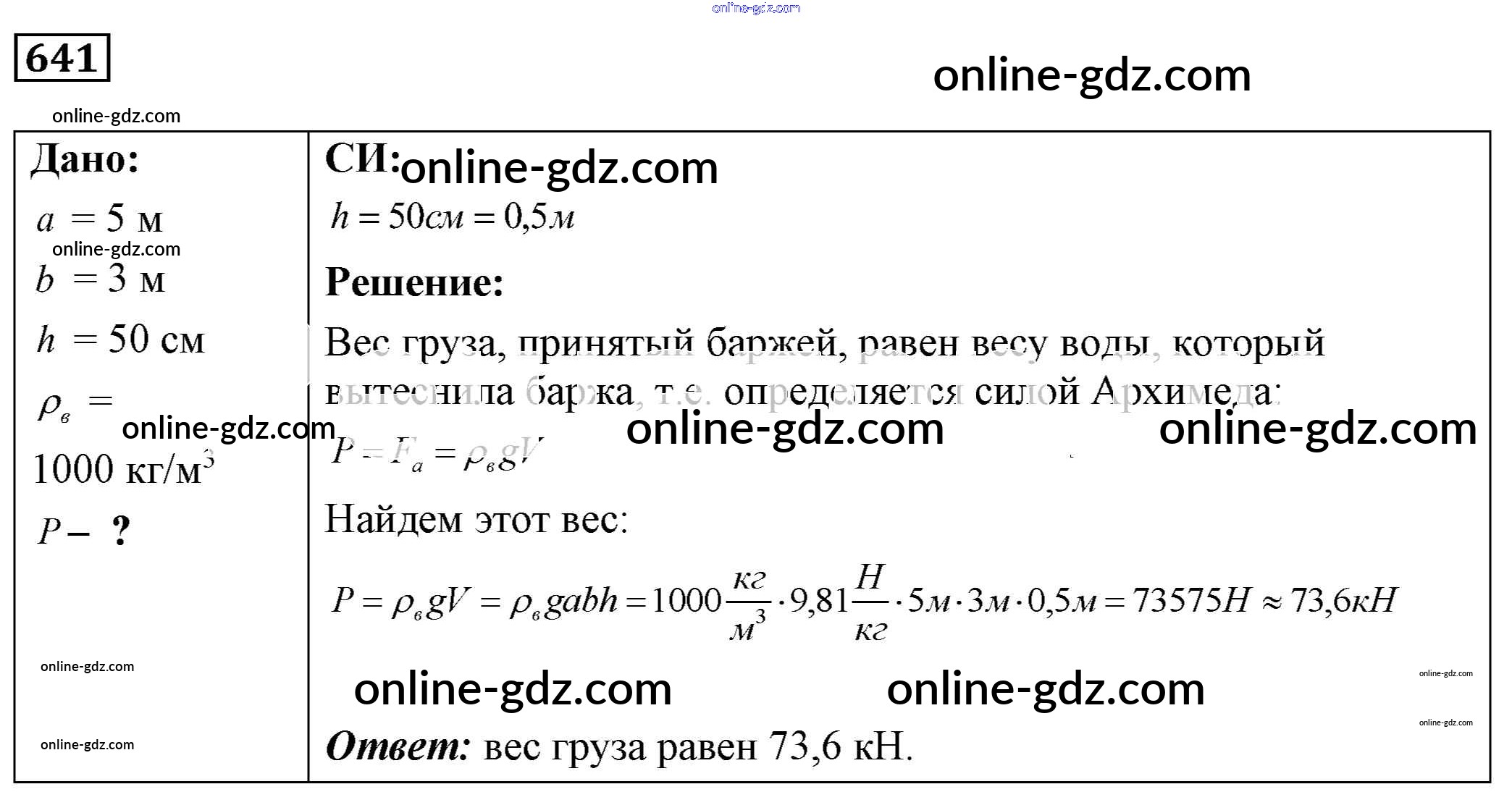 Готовые домашние задания по Физике за 7, 8, 9 класс Сборник задач Лукашик, Иванова 2011 - Задания 641