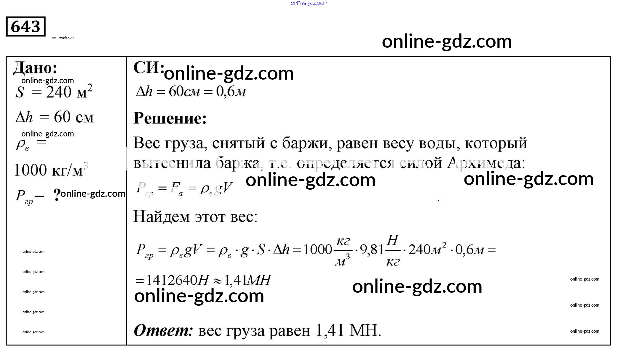 Готовые домашние задания по Физике за 7, 8, 9 класс Сборник задач Лукашик, Иванова 2011 - Задания 643